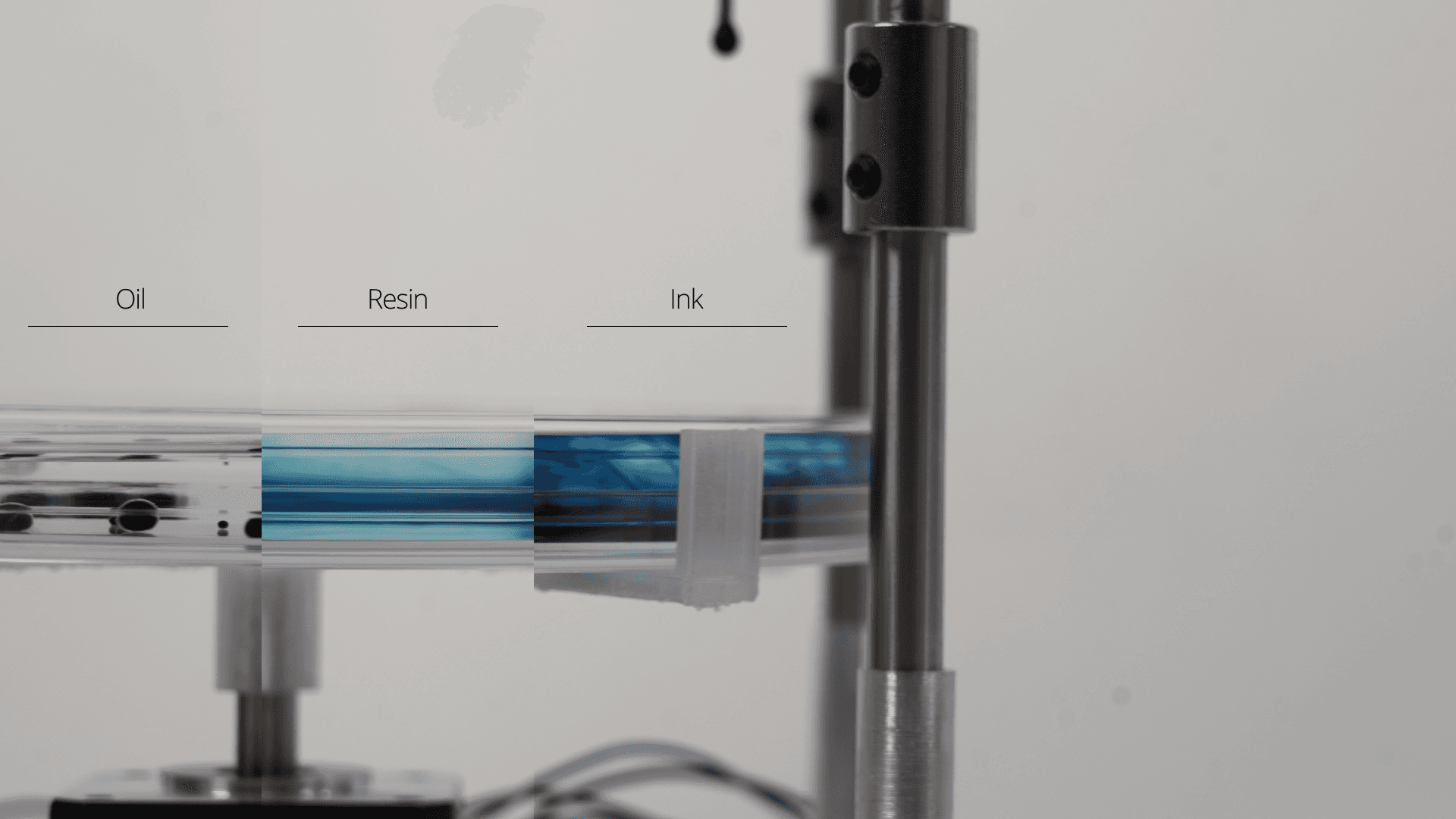 Dynamic physical surface by overlapping density variations across water, oil, alcohol, and ink.