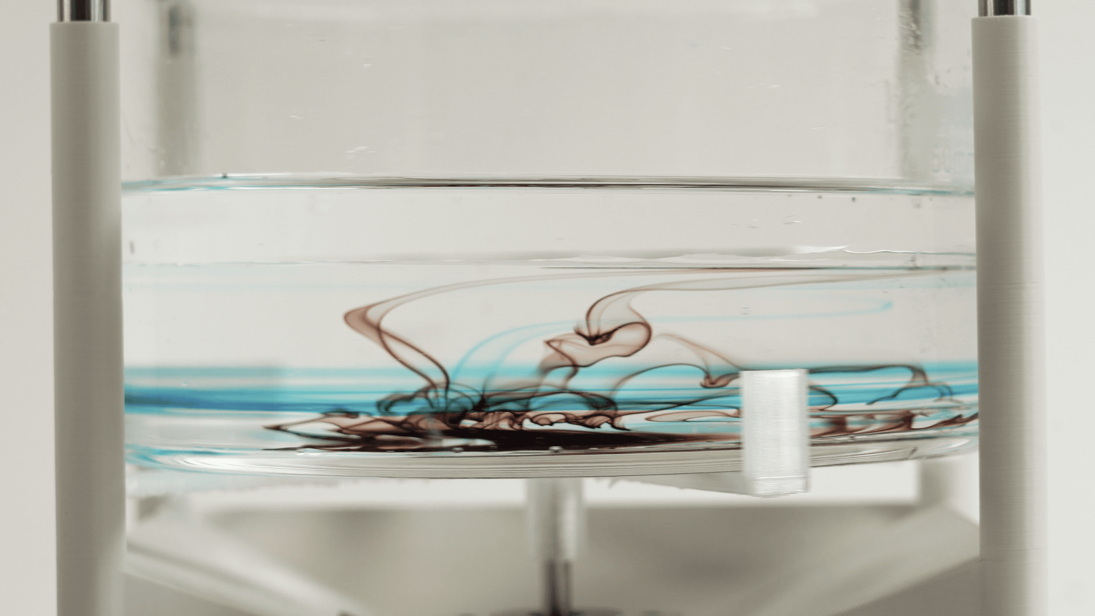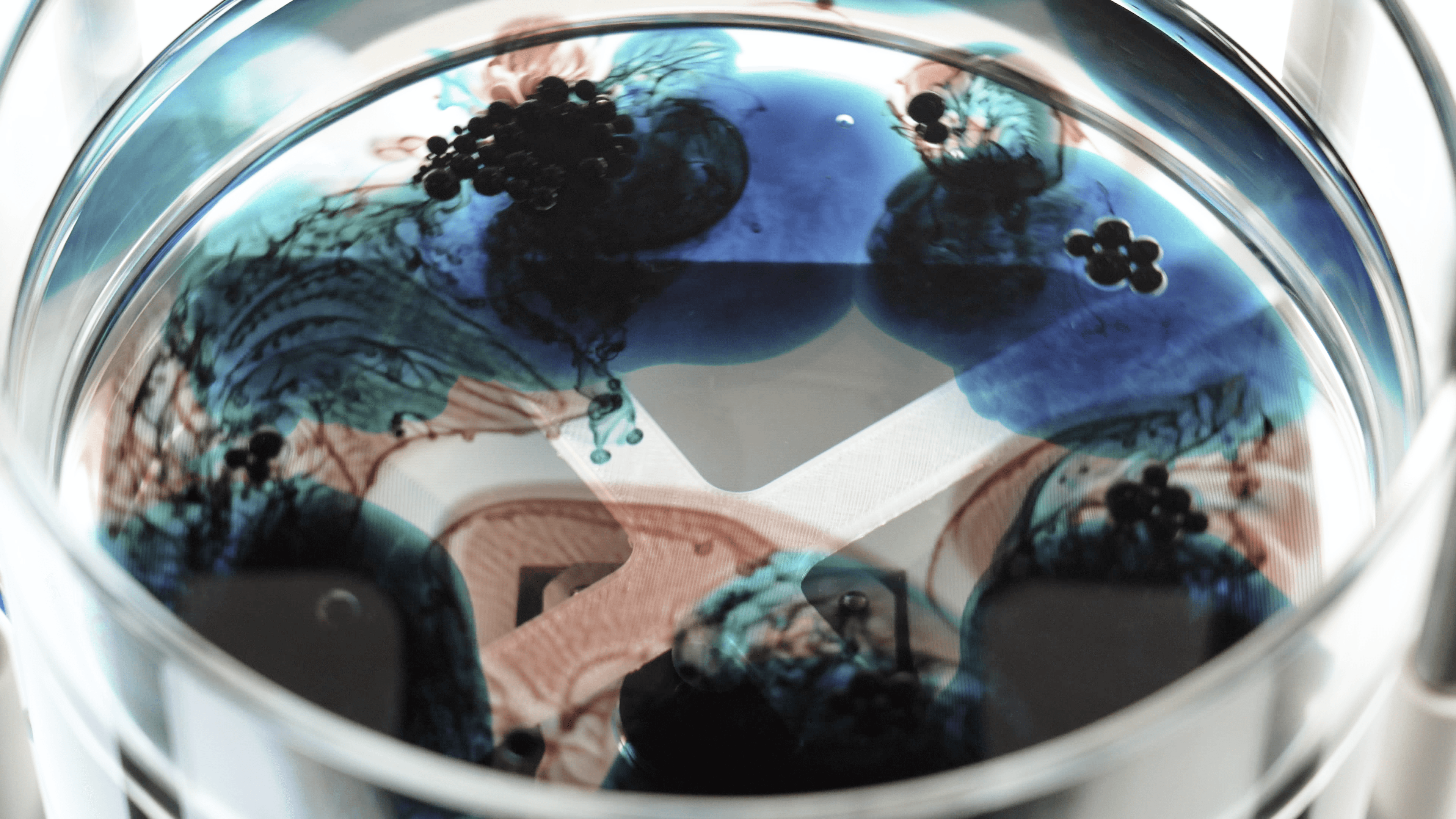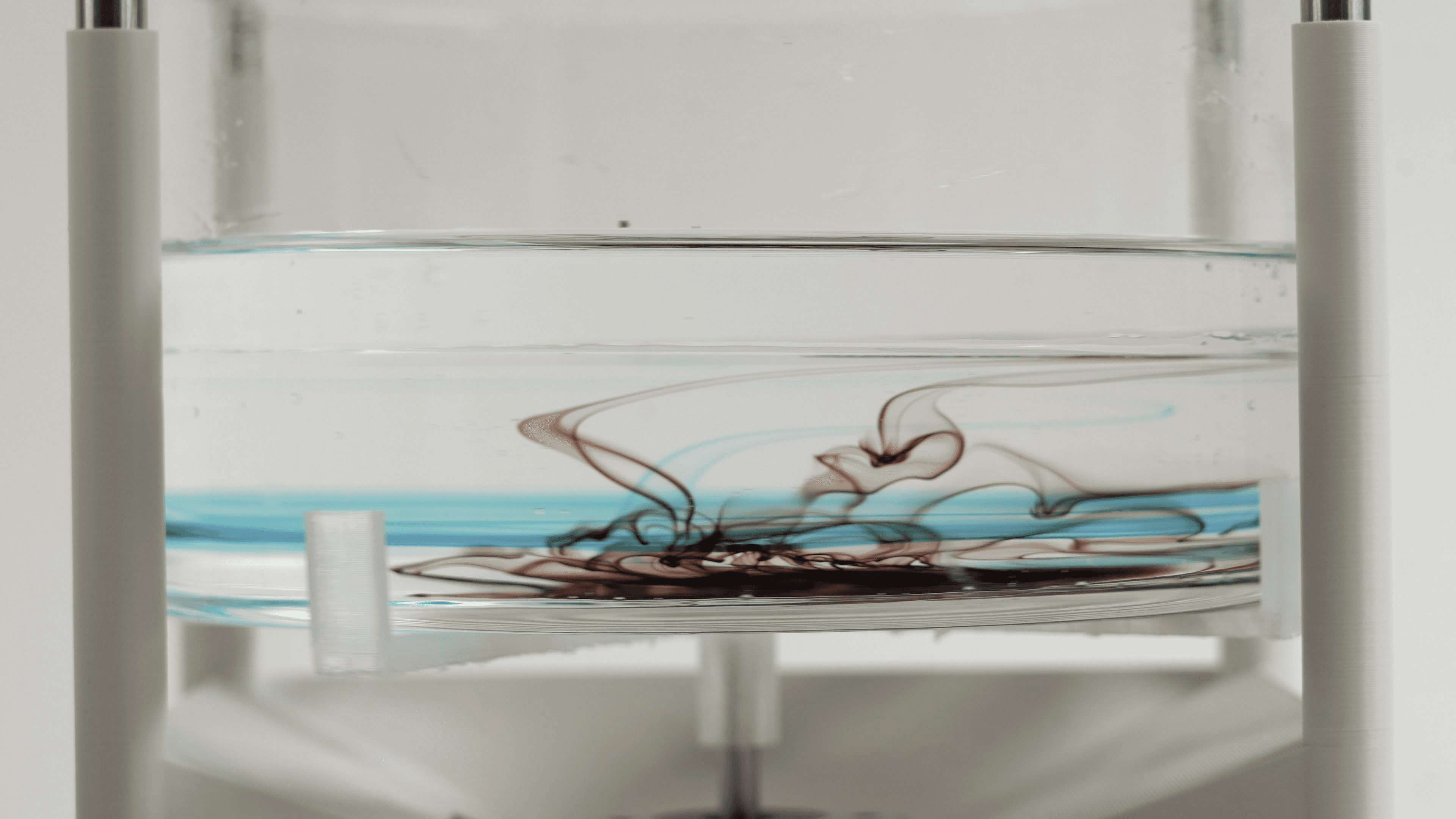 The interaction concludes in shared silence as participants observe the final state of the liquid surface. Diffused ink and oil form an irreversible material trace shaped by the timing, duration, and convergence of their breathing rhythms. This material residue functions as a shared archive of the interaction, enabling reflection on the negotiated experience through synchronized sensation rather than verbal recollection.